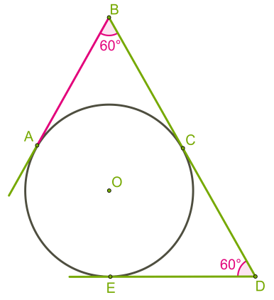 5. Շրջանագծին A, C և E կետերում տարված են AB, BD և DE շոշափողները, իսկ AB=7 սմ: Որոշիր ACE եռանկյան պարագիծը: